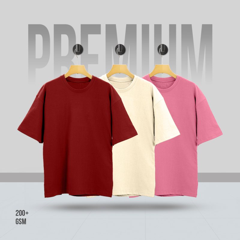 3Pcs Combo Mens Premium Drop Shoulder T-Shirt